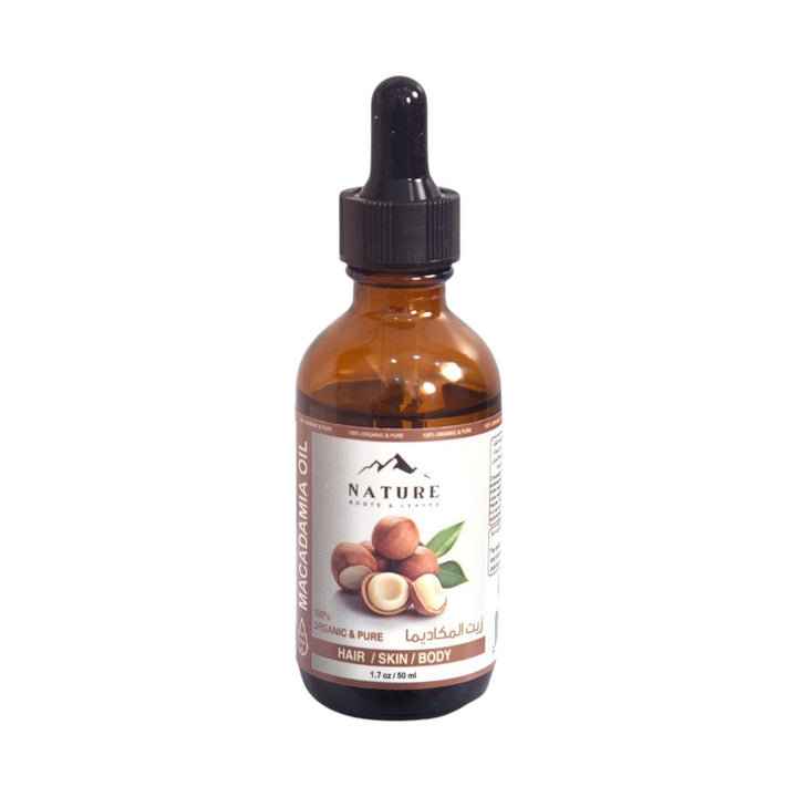 اكتشفي العناية الفاخرة بزيت المكاديميا النقي 100% في زجاجة عملية بحجم 50 مل